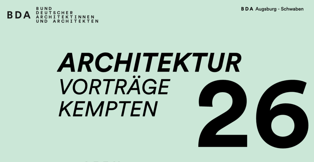 Der BDA Kreisverband Augsburg Schwaben veranstaltet seit den 2000er-Jahren eine Architekturvortragsreihe in Kempten/Allgäu. Dabei interessieren neben den Grundfragen, was gutes Bauen ausmacht, vor allem der Blick hinter die Kulissen der täglichen Büroarbeit, die Entstehungsweisen und Ideen hinter den Bauwerken und Konzepten.