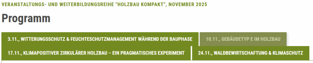 Holzbau Kompakt, Vorträge an den 4 ersten Montagen im November 2025